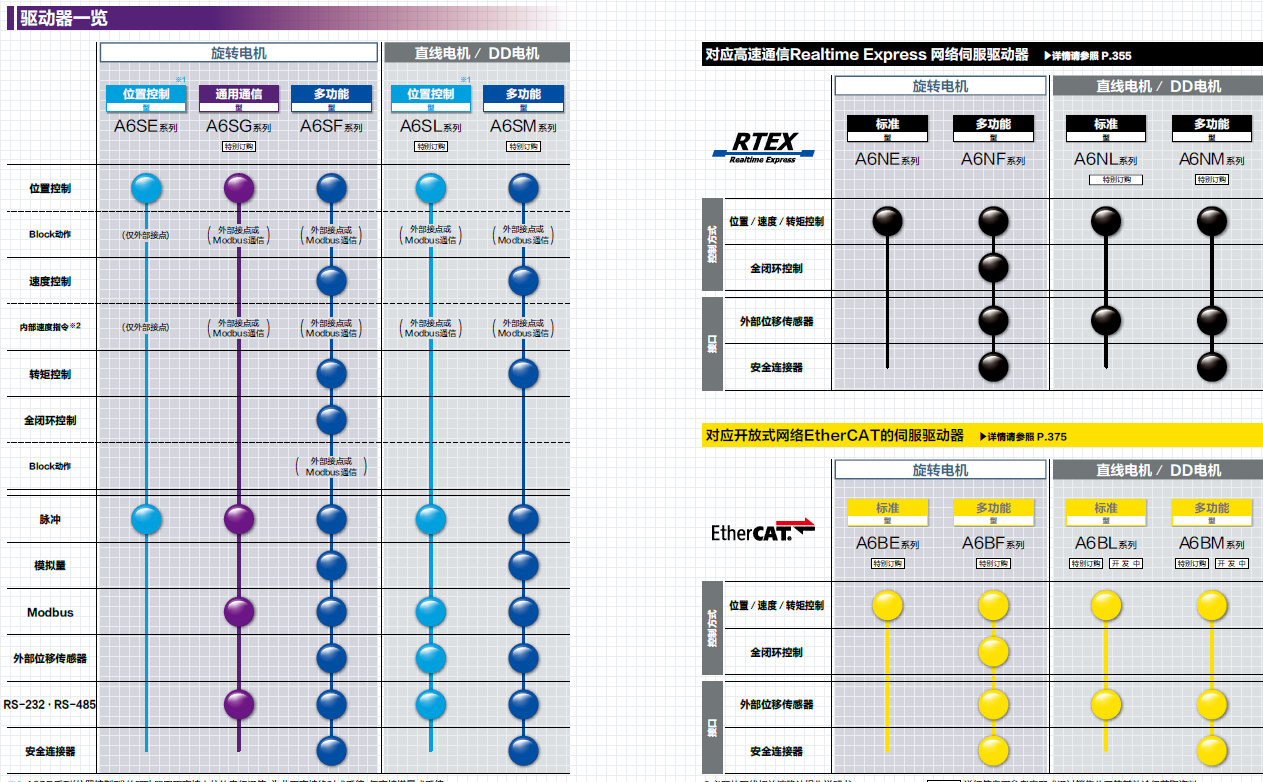 ③網(wǎng)絡(luò)對(duì)應(yīng):RTEX,EtherCat